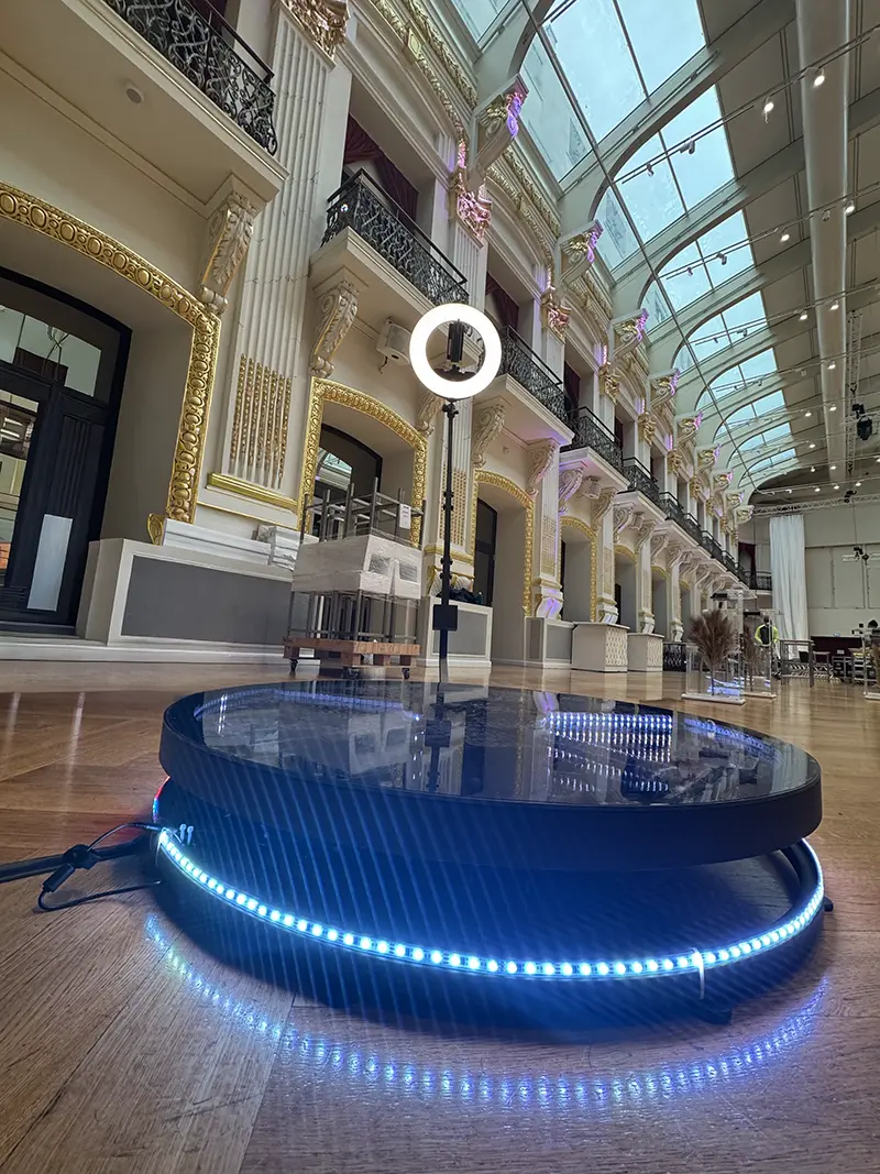 Premium presence for events & brand presentation. Modern design, professional lighting and individual branding make the 360° Spinner the visual highlight of every event.