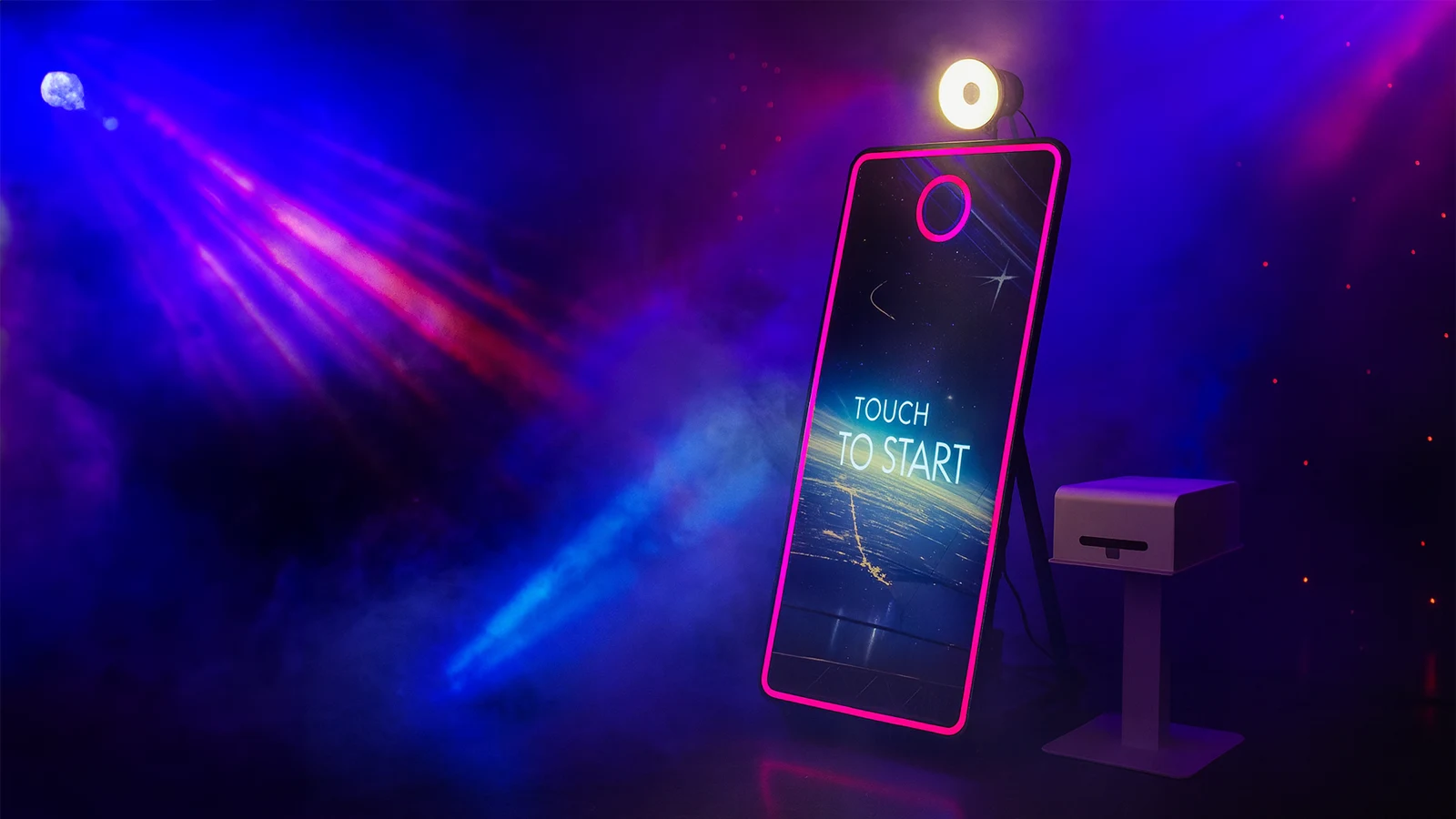 The Magic iMirror is an elegant, very space-saving photo mirror with a sleek design and modern interactive features. Perfect for exclusive events such as weddings, corporate events, or VIP parties, it offers an immersive experience with animations, photo effects, and instant social sharing.
