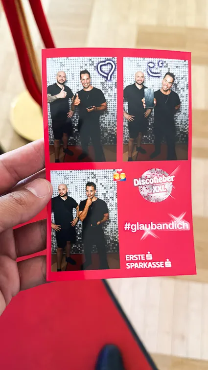 The Magic Mirror is the highlight of Disco Fever XXL and is guaranteed to provide unforgettable moments! With its interactive technology, it turns every event into a real experience. Guests can not only take photos, but also enjoy creative animations that stir up the mood. Imagine posing on the red carpet and becoming the star of your own event show! The photo mirror offers a variety of props, making every photo unique. The Magic Mirror also provides personalized experiences that inspire everyone. The event will be an absolute hit — after all, the great photos are the perfect souvenir for all participants. Be there and experience the Magic Mirror live in the Museumsquartier! Don't miss out on this opportunity.