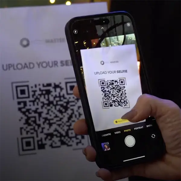 Die AI Guest Booth ist eine smarte Fotobox ohne Kamera. Gäste nutzen ihr eigenes Smartphone, um Fotos aufzunehmen oder mit AI-Prompts neue Bilder zu generieren, die live am Event angezeigt und gedruckt werden.