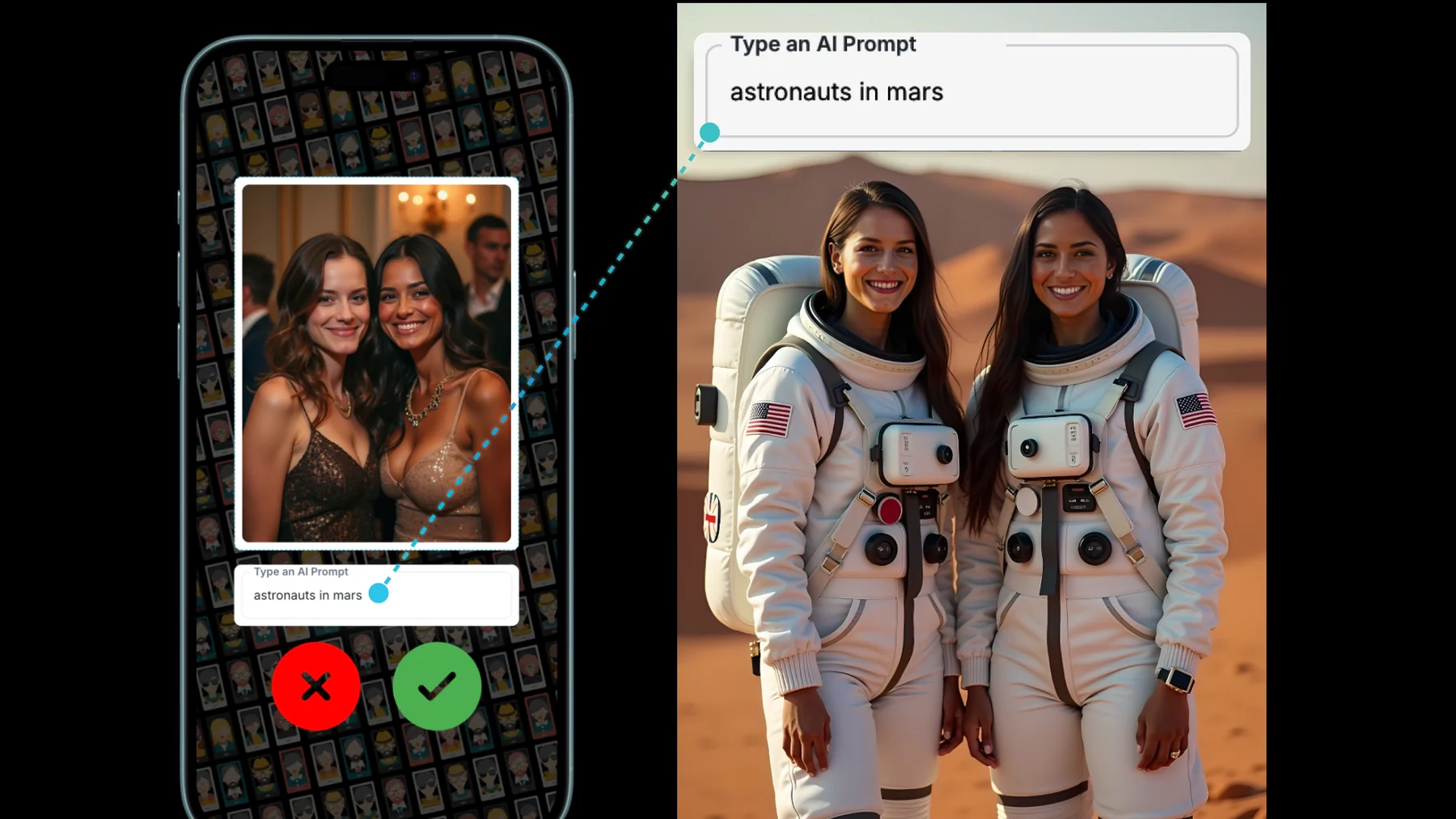 Ja. Gäste können ihre Bilder optional mit AI-Prompts generieren oder kreativ verändern. So entstehen einzigartige Motive, passend zum Event oder Motto.