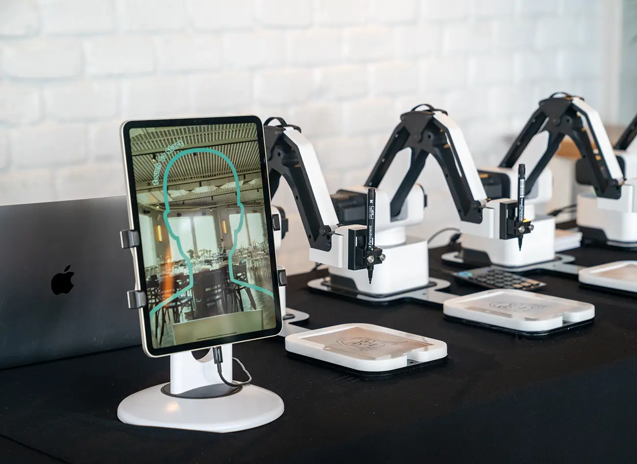 Der Live-Zeichenprozess durch einen Roboter schafft ein emotionales, hochwertiges Erlebnis, das Gäste aktiv mitverfolgen können.